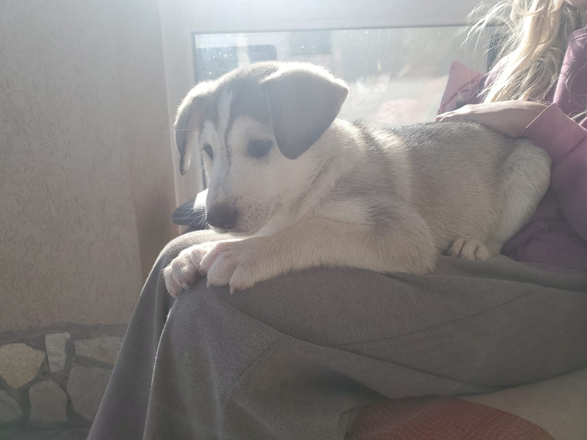 Er wächst hier nun mit Familienanschluss, seinen Geschwistern und noch anderen Hunden auf!