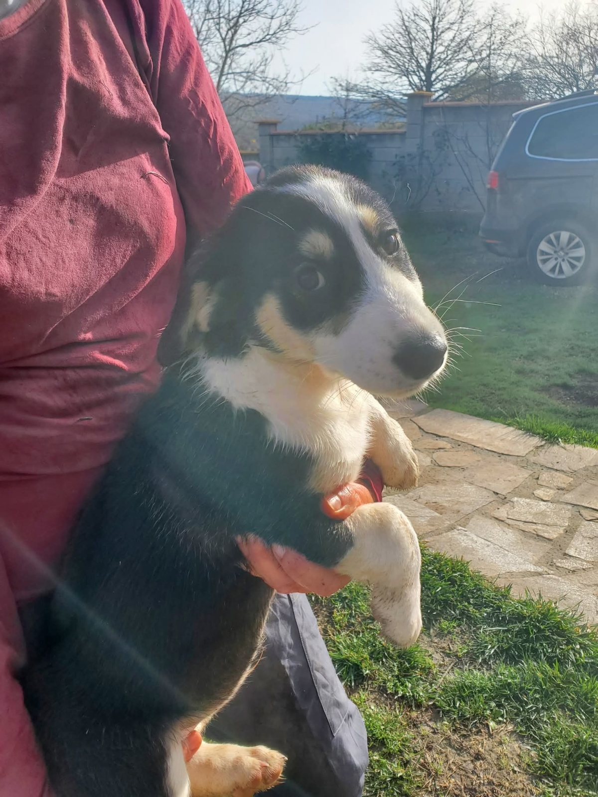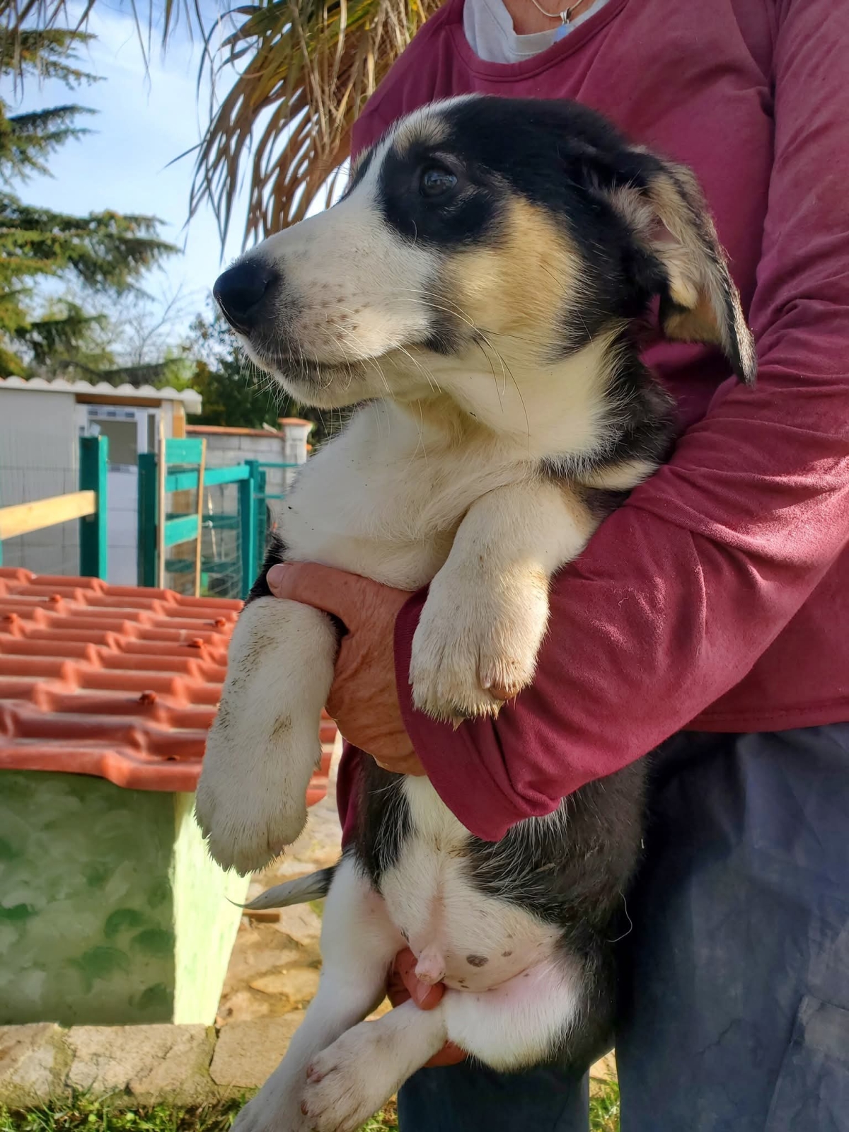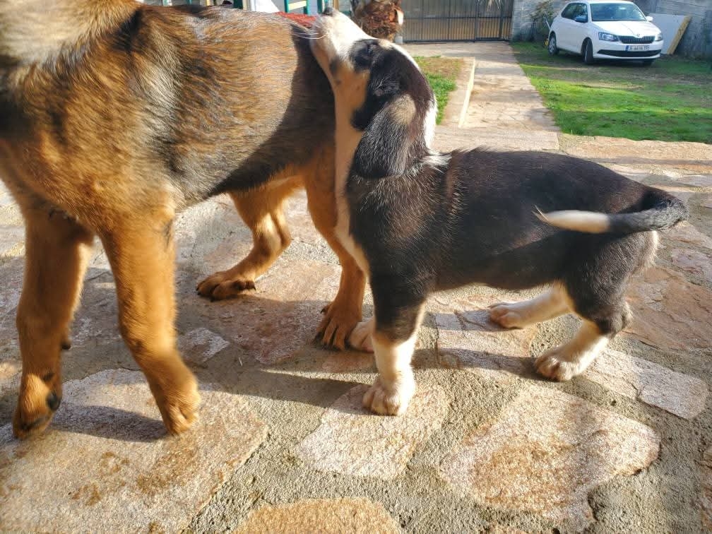 Er wächst hier nun mit Familienanschluss, seinen Geschwistern und noch anderen Hunden auf!