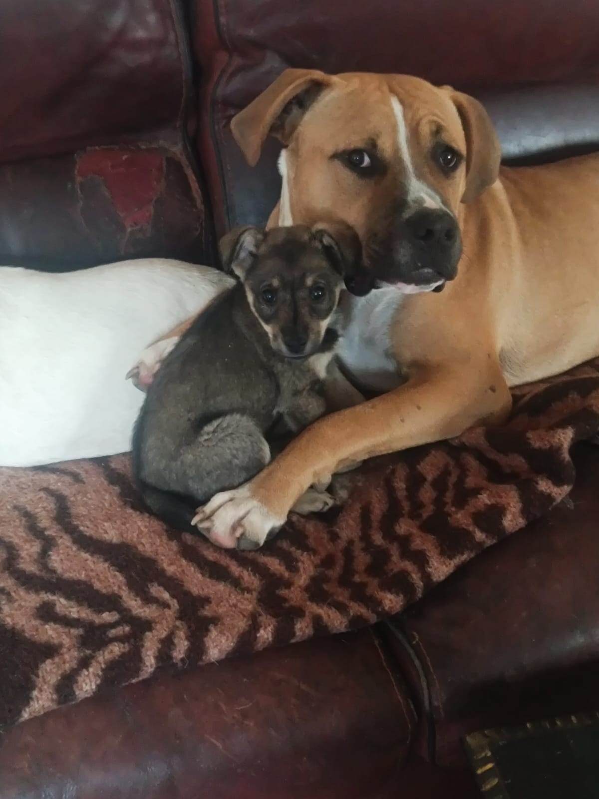 Versteht sich sehr gut mit anderen Hunden und Katzen mit denen sie auf ihrer Pflegestelle zusammen lebt.