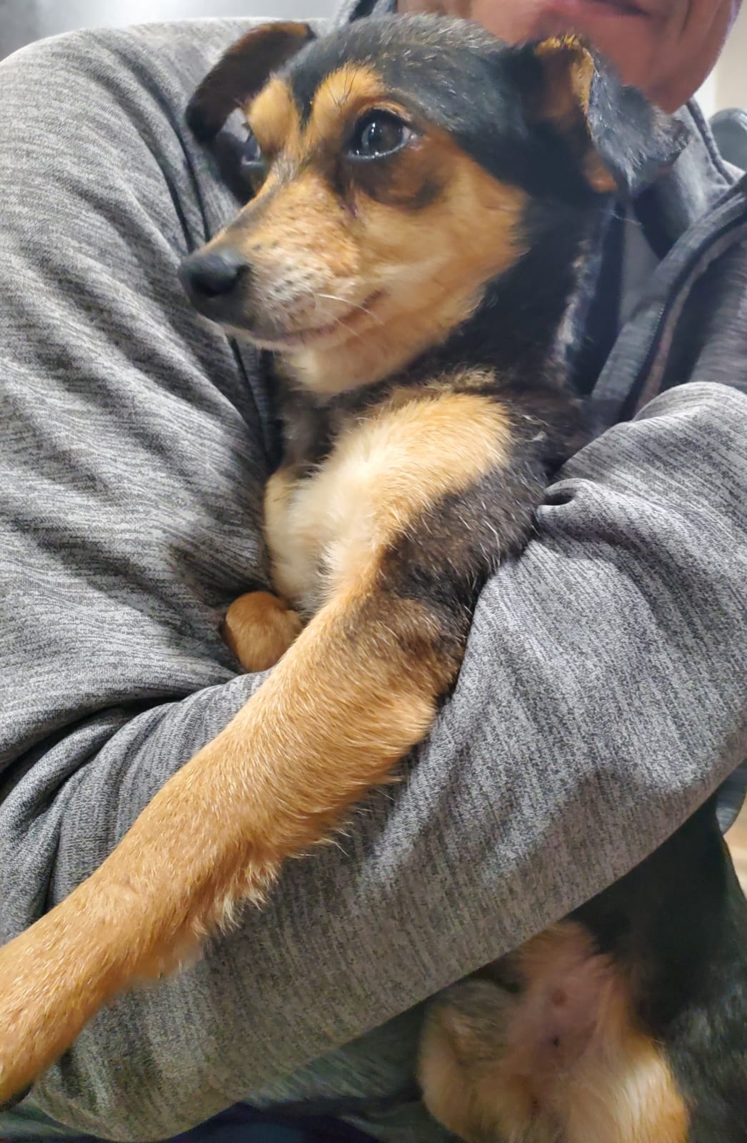 Der kleine Mann wiegt gerade mal 3 KG, geschätzt 5 Jahre alt. Er ist ein Pinscher / Pinscher Mix.